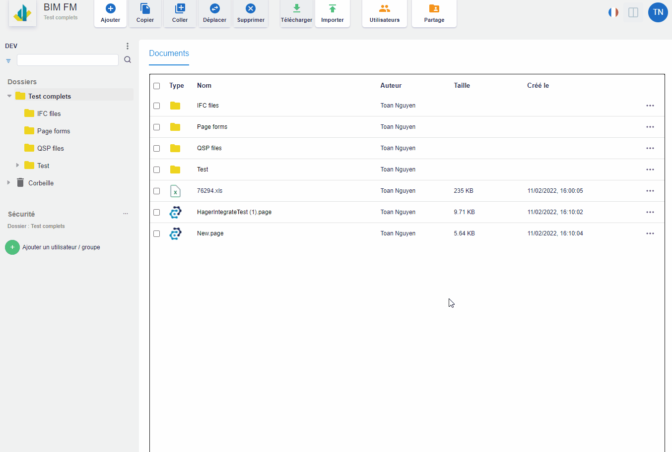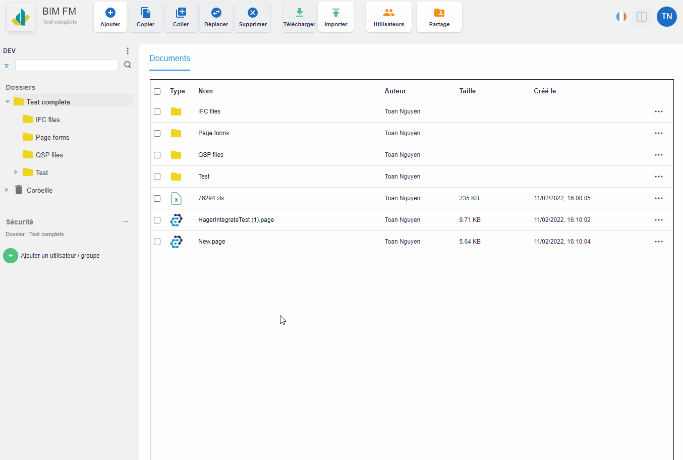 - Cliquez sur l’icône « … » d’un dossier pour le coller dans le dossier ou via le bouton « Coller » de la barre d’outils