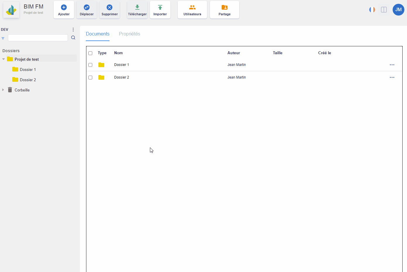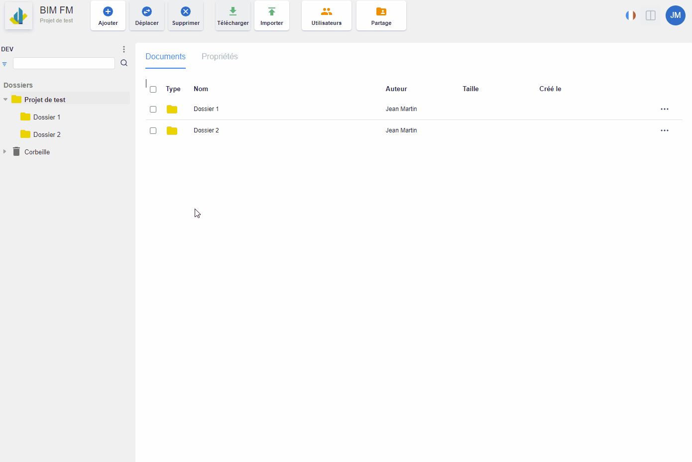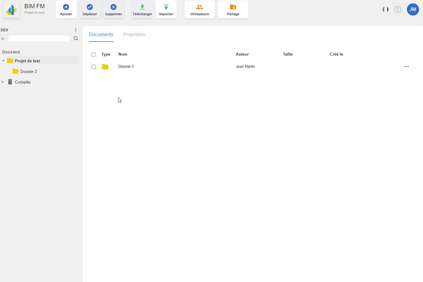 - Les documents du dossier sélectionné s’affichent dans l’onglet « Documents » (partie centrale),