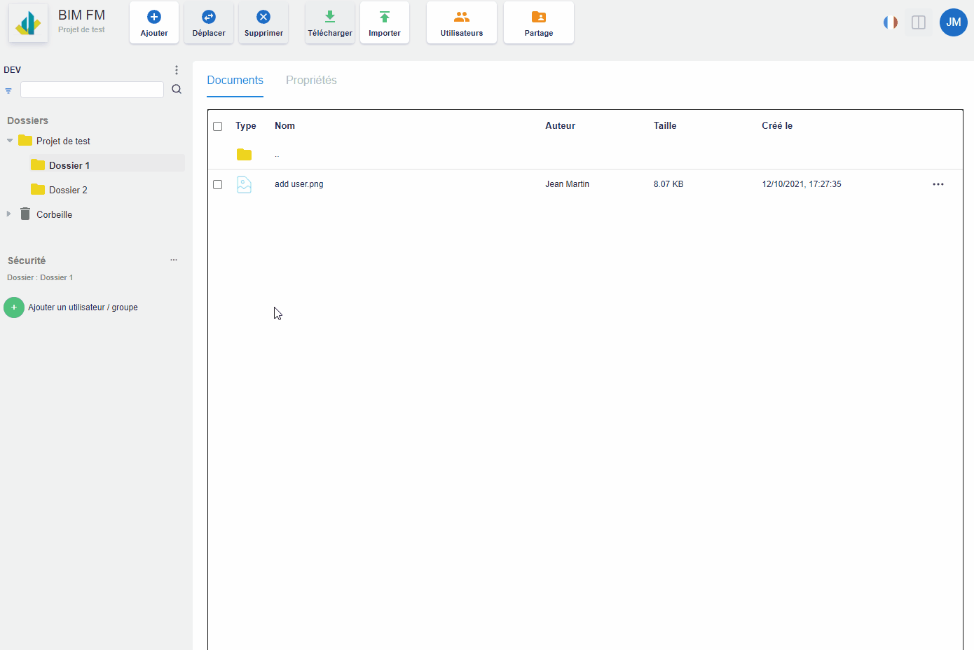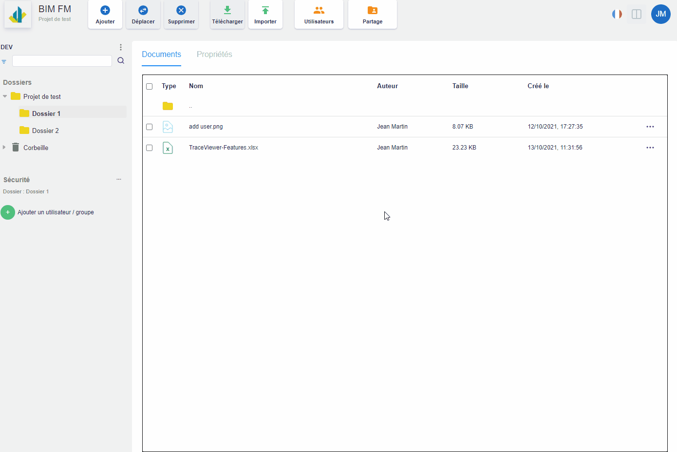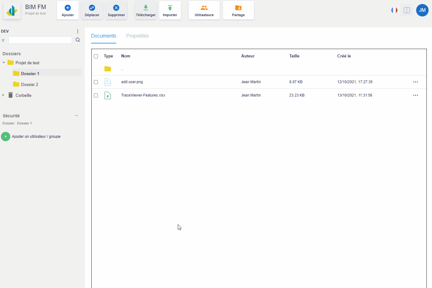 - Les documents du dossier sélectionné s’affichent dans l’onglet « Documents » (partie centrale),