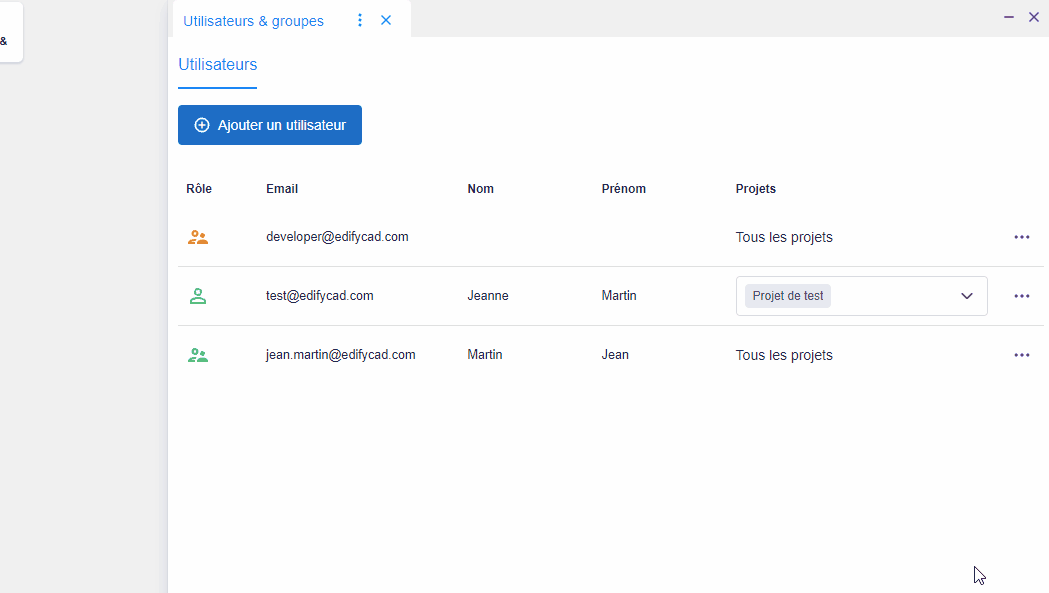 Un utilisateur avec un rôle d’administrateur a accès à tous les projets de l’espace de travail